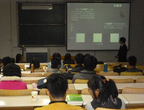 比赛伊始,负责人对“每个人的展示时间限制在五分钟内”、“展示过程中同伴可以辅助展示”等比赛规则作简要介绍。随后,参赛人员以ppt为载体,配合风格相宜的音乐进行个人讲解。他们分别就自己所选中国传统文化的起源、发展和影响等进行精彩展示。源远流长的茶道,博大精深的书法,丰富多彩的节日,雅俗共赏的戏剧,让观众与评委们领略到不同的文化魅力。选手们的精彩讲解,博得评委与观众的阵阵掌声。最后,评委们根据选手在规定时间内的表现,结合ppt内容和展示效果进行评分,负责人对此次比赛进行总结,活动圆满结束。
