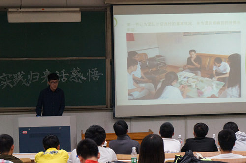 活动中,社会实践的代表—一上场,用ppt演示的方法介绍自己的实践主题和感悟,参赛者的选题多种多样,有“服务基层,砺练青春”的,如“赴德州武城的李家户社会实践团”,他们在当地进行实地考察并针对发现的问题提出解决方案,其方案得到了当地有关部门的认可。有“爱心支教服务三农”的,如“青春梦之行”和“筑梦山村爱心支教活动”,他们关注儿童成长,为了传递爱心播撒希望,采用义务教育的方式,去帮助当地的留守儿童,有关注老员工创业就业的,如“赴济南实践变电站实践团队”,他们去变电站参观实习,坚持动手是解决问题的关键,将理论与实践相结合。还有弘扬五四精神的,如“弘扬五四精神社会实践调研队”,他们走访革命老区,体验当年奋斗的艰辛。