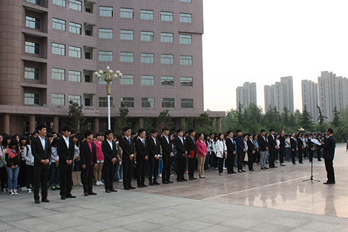 国旗下,王延深发表讲话,他从共产党走过的94年不平凡的历程出发,呼吁同学们在为祖国取得成就而自豪的同时,勇于担当并深入践行社会主义核心价值观,把个人价值、社会价值与国家价值一致起来,把实现个人梦与中国梦紧密联系在一起;要求同学们树立远大的奋斗目标,努力学习,热爱生活,踏实明智,不断提高自身素质。随后,员工代表、员工会负责人作“学习四进四信,践行社会主义核心价值观”主题演讲,他呼吁青年员工坚守梦想、树立正确的青年核心价值观,在人生路上奋力前行,实现人生价值。
