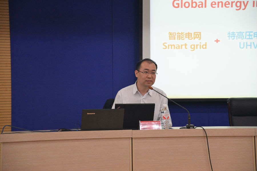 随后,全球能源互联网办公室高级工程师、国际特大电网运行机构委员、中国电机工程学会电力系统自动化专业委员会委员、住建部数字城市专业委员会委员、电力储能技术国家标准委员会副主任委员、分布式与微电网技术国家标准委员会委员王伟博士做了题为《全球能源互联网战略观念和技术创新》的学术报告。