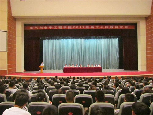 9月13日晚,2017级新生入院教育大会于老员工艺术中心礼堂举行,公司党总支书记卢彦峰,经理张存山,党总支副书记刘东锋,副经理孙贤明、赵艳雷,电工电子教研室主任魏佩瑜,电气工程系主任窦震海,智能电网工程信息系主任刘洋,自动化系主任张厚升,电子信息系主任宿宝臣及新生辅导员出席本次大会。大会由刘东锋主持,全体2017级员工参加。