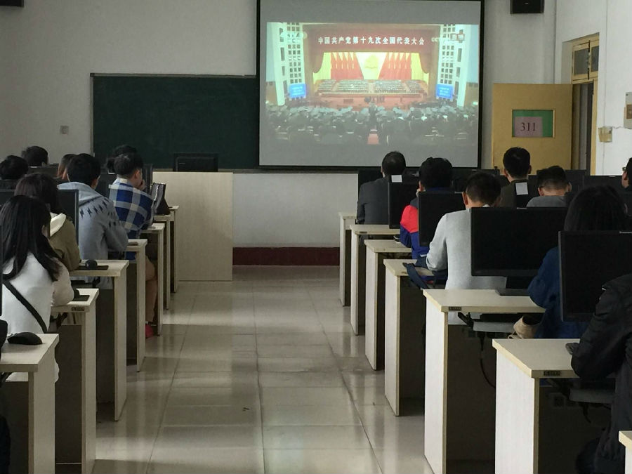 10月18日上午,必威西汉姆联组织全公司党员师生在1号实验楼401教室和311教室准时观看“十九大”开幕式的现场直播。