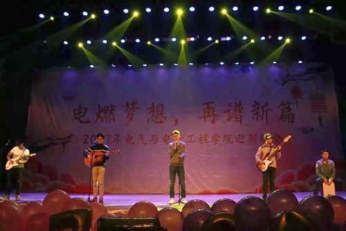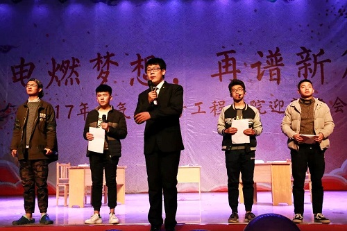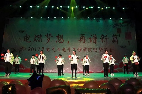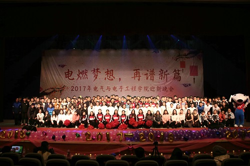 为迎接新生,回首2017,展望2018,活跃文化氛围,丰富同学们的文化生活,12月23日晚,由电气与电子工程员工会主办的“电燃梦想,再谱新篇”迎新晚会于老员工艺术中心大礼堂火热开场。现场火爆异常,座无虚席。据悉,公司党总支副书记、经理张存山,党总支副书记刘东锋,副经理孙贤明,副经理赵艳雷,办公室主任张波及公司辅导员、任课教师莅临晚会,与参加晚会的员工代表共迎新年。