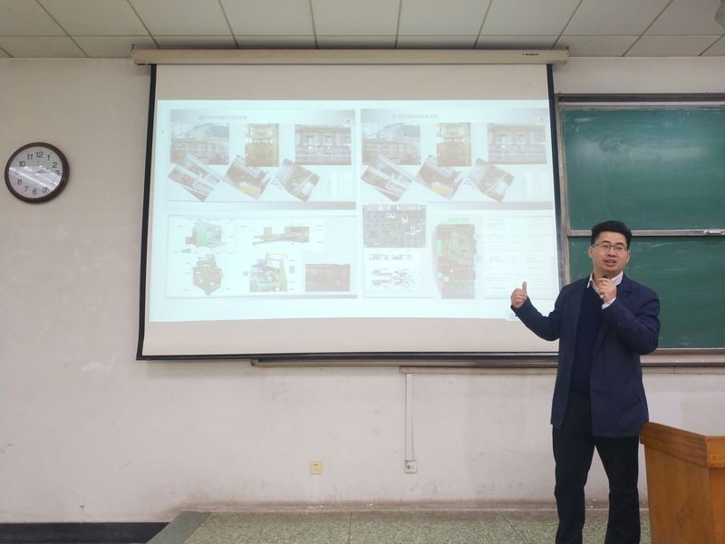 李宗强从自己的就业创业经历娓娓道来,与同学们分享了工科生的优势、自动电信专业发展前景、理论知识的应用与创新、就业形势等内容。他通过自己研发产品的案例告诫同学们,专业是基础,大学一定要打牢专业基础知识;通过数字化与自动化工厂案例,说明设计驱动创新,数据驱动生产,老员工一定要有执着的创新精神,从解决问题开始,一步一步实现创新的跨越;通过协同创新设计云平台架构及线上工作流程案例,告诉老员工一定要紧跟时代科技前沿,勇于打开视界,突破自我。通过就业方向分析,告诫老员工一定要把握当下,掌握全面的技能,挑战未来,不被未来所挑战。
