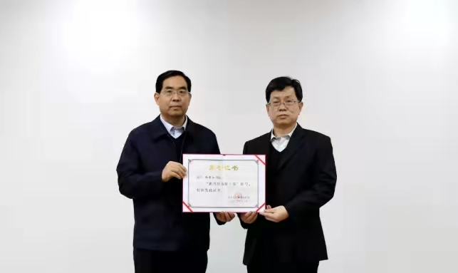 1月15日下午,公司党委书记吕传毅在鸿远楼八楼会议室为张存山颁发荣誉证书。