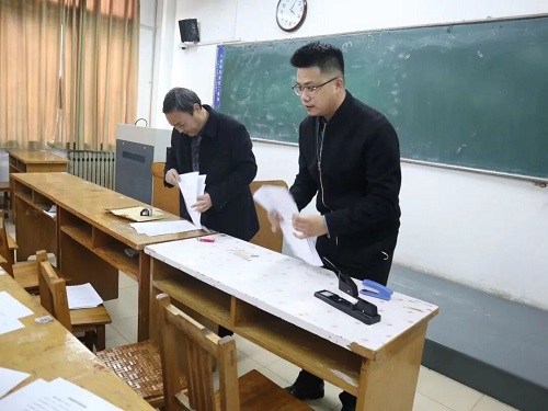 考试结束后,卢彦峰书记和宋建霆老师整理好每位教师的试卷,随后公司安排专人进行阅卷评分。