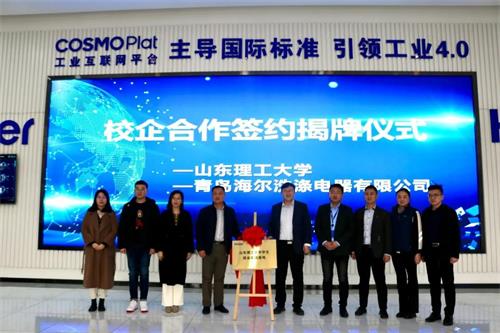 在签约仪式前,参会人员集体参观了企业工厂,了解了企业文化和工作理念,切身感受了干事创业的氛围,随后进行合作洽谈。王自强总经理对海尔5G工厂建设做了详细讲解并对公司一行的来访表示热烈欢迎。张家硕详细介绍了卓越工程师培养计划项目细则,具体涵盖了项目背景、流程节点与需求及培养方案等。随后孙钦泉副处长发表讲话,先后介绍了公司概况、服务社会和校城融合现状以及公司团队力量、团队建设、专业设置和办学发展理念,并对多年来海尔集团与公司的长期合作交流表示感谢,对本次签约仪式的成功举办以及校企双方更深层次的合作给予美好的期待和展望。王潇伟副书记对海尔的卓越工程师PEDP育人模式表示充分肯定,对“3.5+0.5”的校企培养模式展开了研讨交流会,并就教育部供需对接就业育人项目展开详细交流。随后,校企双方领导和相关负责人就项目细则展开讨论。交流结束后,双方领导现场签订了校企合作协议书并举行了“必威西汉姆联老员工就业实践基地”挂牌仪式。