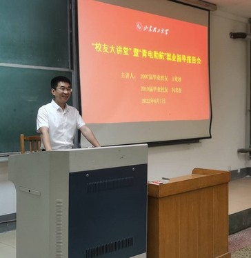 报告会伊始,王钦冰以“给师弟师妹说说供电公司”为题,结合自身的工作和成长经历,从“供电公司到底有什么”“供电公司到底干什么”“在这里我能得到什么”“个人感受”四个模块讲解了国网山东省电力公司、市供电公司、县供电组织机构图,讲解了不同部门的职责、分工与政策。他重点强调了山东省国网的人才培养机制,即为“金种子”青年人才培养工程、“大讲堂”培训模式、竞赛调考培养模式。最后,他提出三点建议。一是成长源于积淀。坚持持续学习,不能小进则满;要脚踏实地,不能好高骛远;要深学细挖,不能浅尝辄止。二是成长源于历练。要磨练意志、敢于吃苦;勤于思考、善于总结;珍惜平台、主动融入。三是成长源于担当。在政治上要把政治和干工作有机结合;在工作上用争先指标和优秀业绩证明自己、赢得认可;在生活上要有角色转变意识,做一名讲责任、有担当、重品行的新时代青年。