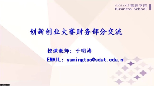 于明涛老师结合创业类项目和本次竞赛的特点,从股权融资方式选择、股权结构设计的基本原则、财务报表预测及分析、典型税务问题四个方面介绍了创新创业类项目的分析方法和注意事项,并从专业的角度解答了部分同学对创新创业类项目的问题。