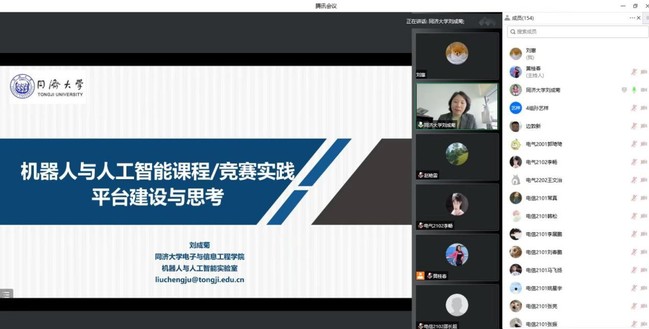 刘成菊以“机器人与人工智能课程/竞赛实践平台建设与思考”为题,从同济大学机器人与人工智能实验室的介绍、自动化/人工智能人才培养、机器人与人工智能实践与创新平台、《综合设计与实践》的内容说明等四个方面做分享。她指出,对于自动化/人工智能人才培养方面,重点要做到“厚基础”、“强实践”、“宽视野”三个方面的工作,并强调“创新引领、本研协同、教研融合”的重要性。随后,她结合自身经验,就“可持续的培养过程”的思考作出自己的见解,并提出“本研贯通、教研结合”是可持续发展的重要环节。