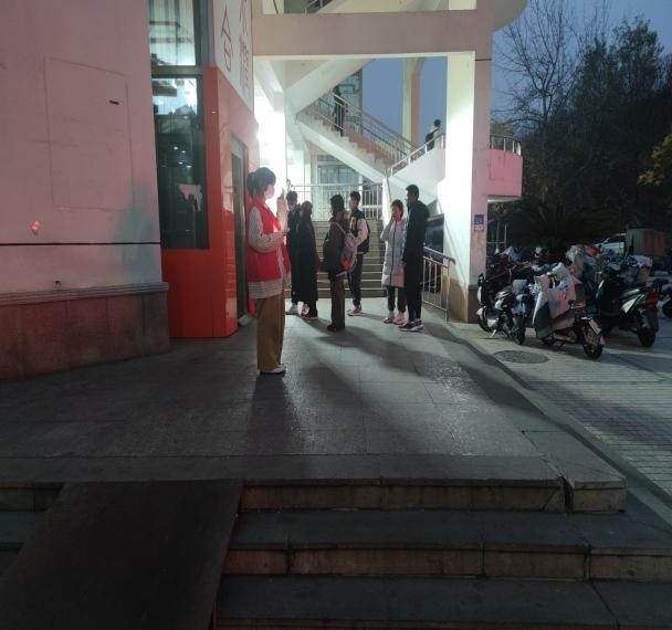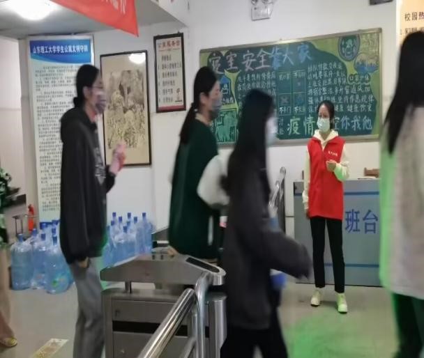 此次志愿服务活动的时段正是同学们去往餐厅就餐的人流量高峰期,因此戴好口罩、做好自我防护便显得尤为重要。志愿者们在同学们前往就餐前提前就位,在宿舍、十三号教学楼和餐厅的门口提醒同学们注意当前的疫情形势,及时佩戴好口罩,并为忘记携带口罩的同学提供口罩。同学们也积极地配合着公司的疫情防控工作,在志愿者提醒后认真配戴好口罩。