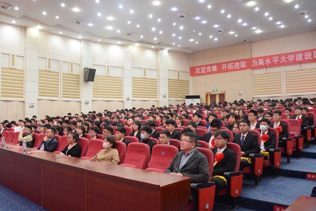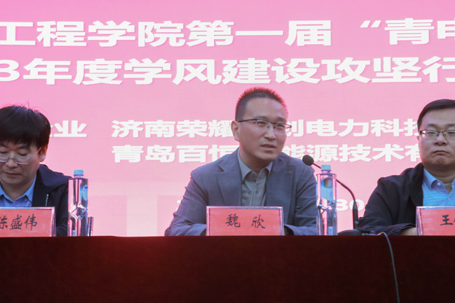 王仕林代表青岛百恒新能源技术有限公司结合自身创业经历及个人感悟进行了分享。他向同学们提出了三点建议:一是百折不挠,学会在逆境中成长;二是持之以恒,树立坚持到底的信念;三是修身立德,培养正大刚直的浩然正气。