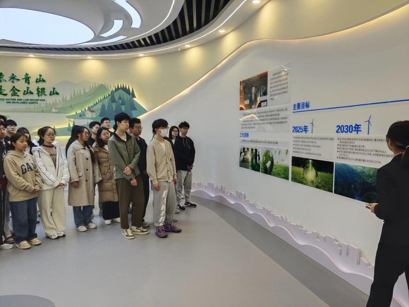 在讲解员的带领下,党支部成员代表先后参观序厅、启幕、奏明、先行、筑梦、终厅等六部分板块,感受淄博市在零碳时代的绿色缘起、绿色振兴、绿色成果和绿色未来。通过宣传片、沙盘、立体屏幕、展板等多种方式,向大家解读习近平总书记碳达峰碳中和重大战略决策,山东省政府、淄博市政府在推动产业结构和能源结构调整方面的大政方针和行动计划。