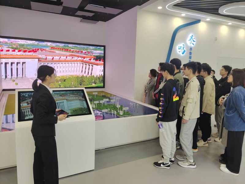 参观过程中,同学们认真聆听,了解到山东省电网、淄博电网的发展规划和可再生能源的发展历程,掌握到新能源技术在公司、农村、工业企业、商业楼宇、医院、住宅等方面的应用案例,传播了绿色低碳的生活方式。在讲解员的协助下,员工代表现场积极进行游戏互动,亲身体垃圾回收、绿色社会、家居生活、生态环保、新能源汽车五大方向的无限空间,感受零碳时代的美好未来。