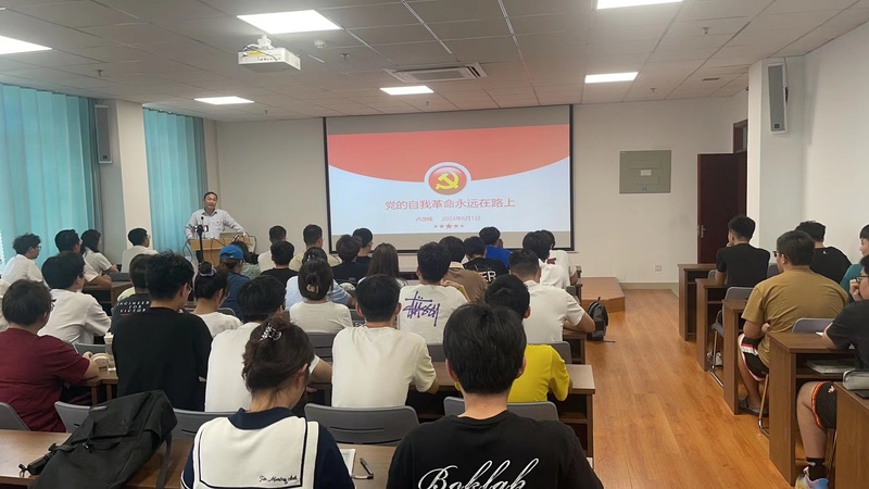 党课结束后,员工第二党支部以党小组为单位,结合自身年级实际,分别讨论“毕业生如何站好最后一班岗”“低年级的员工党员应如何起到党员先锋模范带着头作用”等问题,并以小组合作创作的形式展示了各自小组的队名、口号、目标等等。大家纷纷表示:新的赶考之路上,我们要深入学习贯彻习近平总书记重要讲话精神,坚持自我革命,深入推进全面从严治党,以永远在路上的坚韧和执着,把全面从严治党这场伟大自我革命进行到底,以党永不变质确保红色江山永不变色。