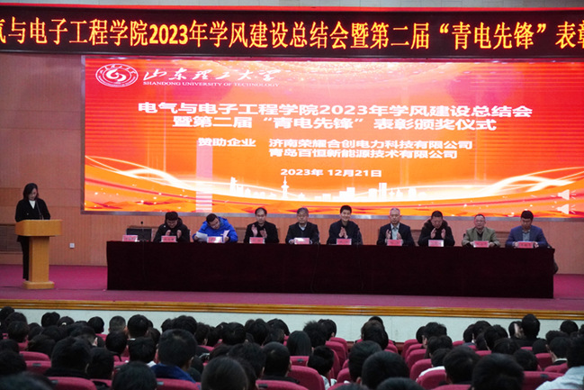 为贯彻立德树人根本任务,充分发挥先锋模范的示范引领作用,12月21日下午,必威西汉姆联在三号教学楼报告厅举行2023年学风建设总结会暨第二届“青电先锋”表彰颁奖仪式。济南荣耀合创电力科技有限公司董事、副总经理柳滨,青岛百恒新能源技术有限公司创始人、董事长陈虎,公司党委常委、副董事长陈靖出席仪式,企业有关领导、校员工工作部、校团委负责人、必威西汉姆联有关领导、受表彰员工及部分员工代表参加仪式。仪式由公司党委副书记王潇伟主持。