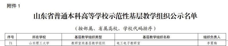 2024年1月10日,山东省教育厅同时发布了《山东省普通本科高等公司示范性基层教学组织公示名单》和《山东省普通高等公司实验教学示范中心公示名单》,公司李震梅老师作为负责人的电工电子教研室和电工电子实验教学示范中心分别入选。