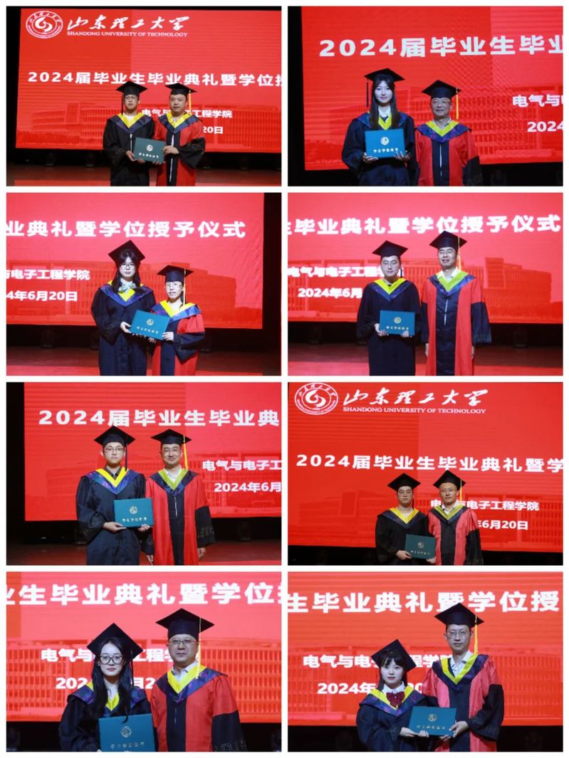 在颁发学位证书环节,毕业生们满怀喜悦与激动,依次上台。各位老师为毕业生们正冠拨苏,授予学位证书。