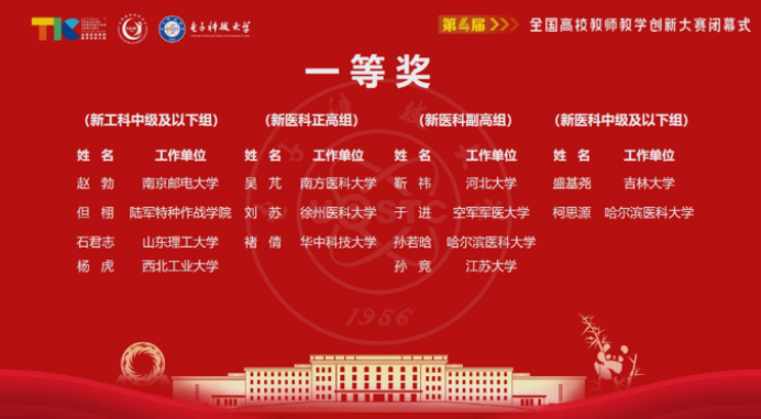 7月27-31日,由教育部高等教育司指导、中国高等教育学会主办的第四届全国高校教师教学创新大赛在电子科技大学落下帷幕。经过激烈角逐,公司教师石君志(团队)斩获新工科中级及以下组一等奖,这是继第二届(张厚升)、第三届(张岩)后,公司第三次获得全国一等奖,创“三连冠”!本届大赛,山东省代表队共获3个一等奖,新工科中级设了4个一等奖,公司为其中一个。