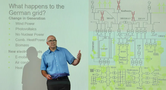报告会上,Markus Zdrallek教授详细介绍了德国在分布式光伏大规模接入方面的实践经验,重点讲述了如何应对可再生能源大规模接入对配电网带来的技术挑战。他指出,随着光伏系统的广泛应用,电网的稳定性和灵活性成为关键问题。他结合德国的成功案例,展示了通过智能调度、储能技术和负荷管理,如何优化电力分配,确保电网在大规模可再生能源接入时的稳定运行。德国的这些实践为其他国家提供了宝贵的借鉴经验。报告结束后,Markus Zdrallek教授与参会师生展开深入的交流与讨论。(赵伟同、梁菲雨)