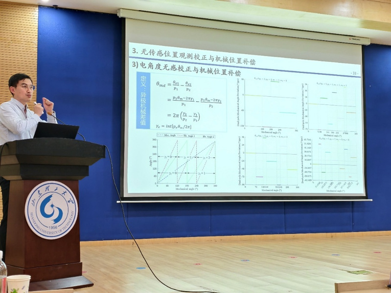 在科普报告环节中,青岛大学倪荣刚教授以“无传感绝对位置伺服系统——电机拓扑与控制策略”为题,介绍了机器人关节位置检测技术的发展现状,阐述了无传感器技术在伺服电机位置闭环控制方面的可行性和解决方案,并指出其在特种机器人领域的潜在优势和应用前景。