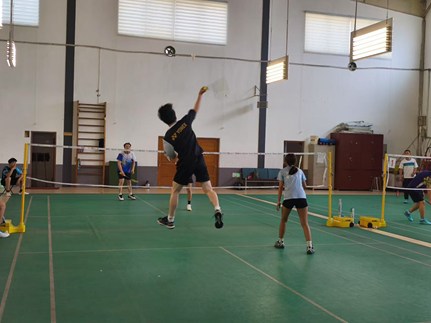比赛采用师生混合团体赛制,场上既有经验丰富的教师选手,也有活力四射的员工球员。教师队凭借扎实的技术功底和丰富的比赛经验,在球场上展现出沉稳老练的球风,巧妙运用高远球、吊球等战术;员工队则以敏捷的步伐、灵活的反应和奋不顾身的救球,诠释了青春的拼搏与无畏。