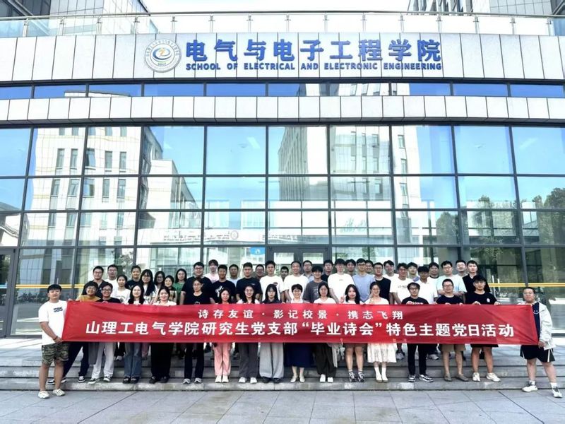 最后,全体党员手持“诗存友谊.影记校景.携志飞翔一一山理工公司研究生党支部毕业诗会特色主题党日活动”的条幅,在7号实验楼下合影留念。(谢婕)