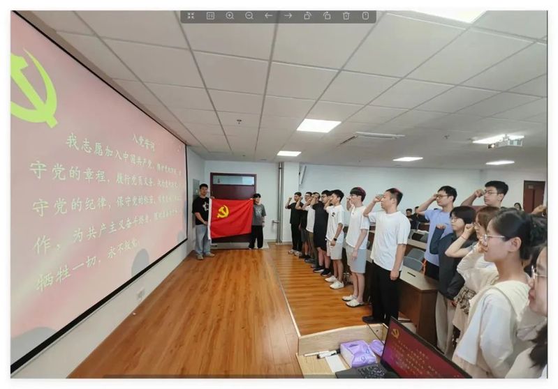 在毕业季和“七一”建党节来临之际,研究生党支部联合以毕业诗会的形式开展特色主题党日活动。第一项议程是入党宣誓。研究生党支部的21名毕业生党员,面对鲜艳的党旗,重温入党誓言。毕业生党员纷纷表示,作为青年党员一定要不忘初心,牢记使命,履行党员义务,不论走到哪里,都要记住党员身份,让党徽闪闪发光,为党的事业贡献力量。