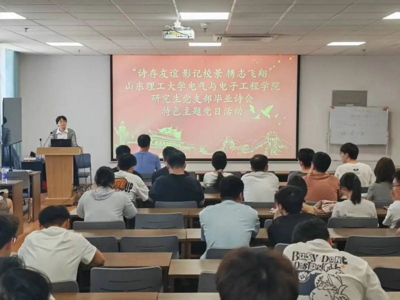 在诗会上,研究生辅导员作了点评讲话,提出三点希望:一是坚持理论武装。希望大家始终以习近平新时代中国特色社会主义思想为指引,坚守初心使命,把个人理想融入党和国家事业发展大局;二是牢记校训院训。无论未来走到哪里,都要牢记”厚德、博学、笃行、至善“的校训,以高尚品德立身,以广博学识立业;践行“务实、创新、砺志、有为”的院训,脚踏实地、勇于创新,要永远铭记母校的培养,常念师恩,心系母校发展;三是以新的姿态走向社会,继续发扬青电精神,学以致用,勇于实践,在各自领域发光发热,努力成长为共和国的栋梁之材,在实现伟大中国梦的征程中,积极贡献自己的智慧与力量,用实际行动书写无愧于时代、无愧于青春的华丽篇章。