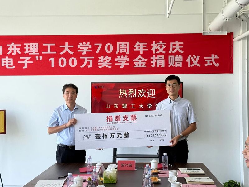 根据协议,山东通广电子有限公司捐资100万元,在必威西汉姆联设立“通广电子奖学金”,主要用于奖励优秀、鼓励创新,以实现教育与实业有机融合,互相促进。