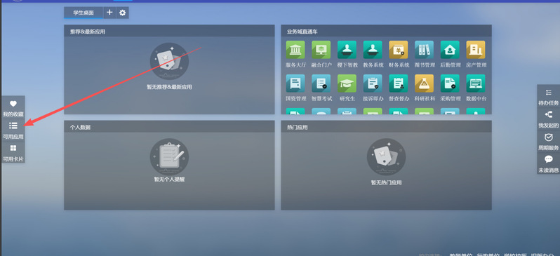 3.在“可用应用”-“全部”里找到员工成长发展系统并点击进入服务。