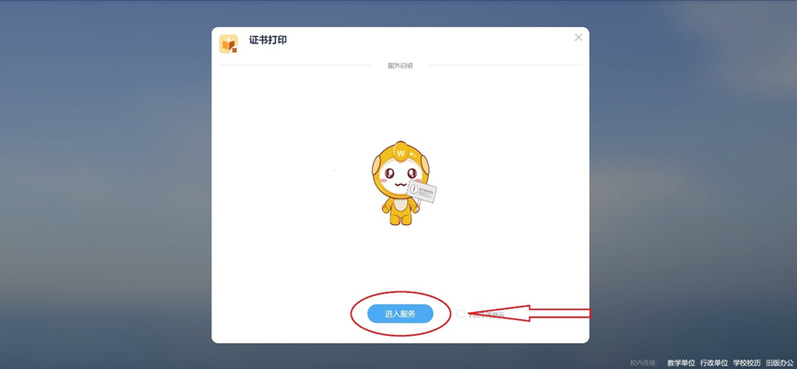 3.在“服务大厅”———“学工”——“员工服务”——“荣誉称号进入”——“我的申请”——“申请详情”里找到“证书打印”后,点击并进入服务。