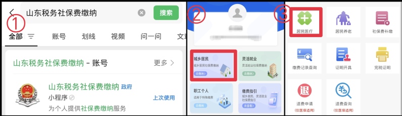 2.选择“城乡居民医疗”,按提示输入个人信息并完成缴费。